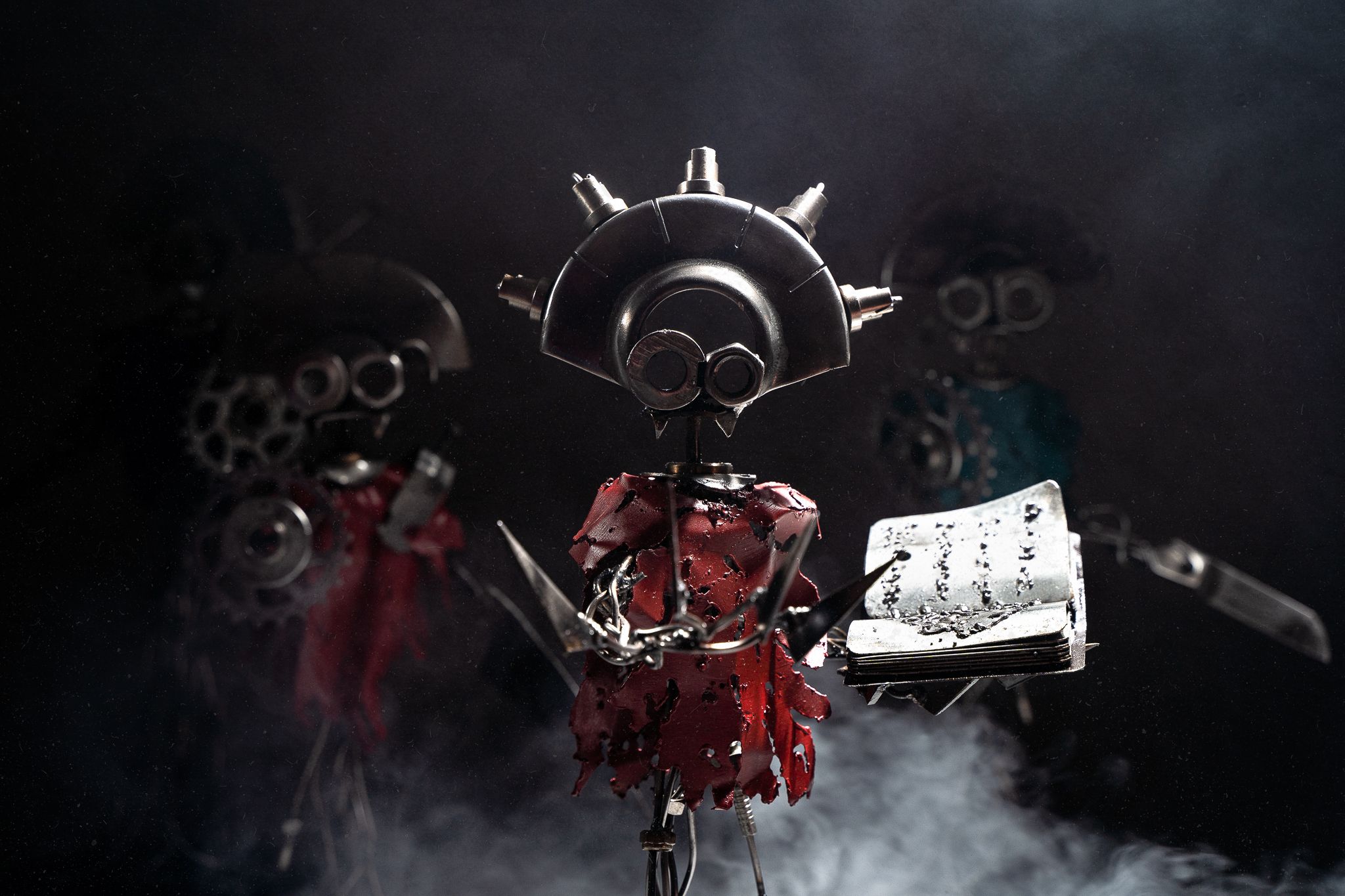 Glaner ci et là des morceaux de robots et de zoulous cassés sur le champ de bataille. Ajouter un peu d’amour (un bocal suffit), bien secouer et laisser mijoter un soir de pleine lune.Servir épicé !